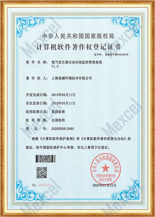 •  氫氣發(fā)生器在線監(jiān)控管理系統(tǒng)著作權(quán)證書(shū)